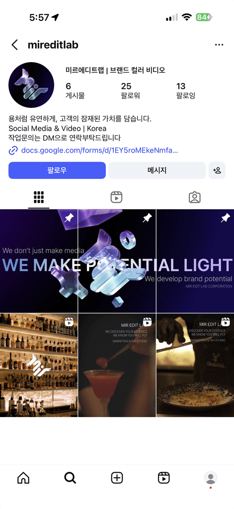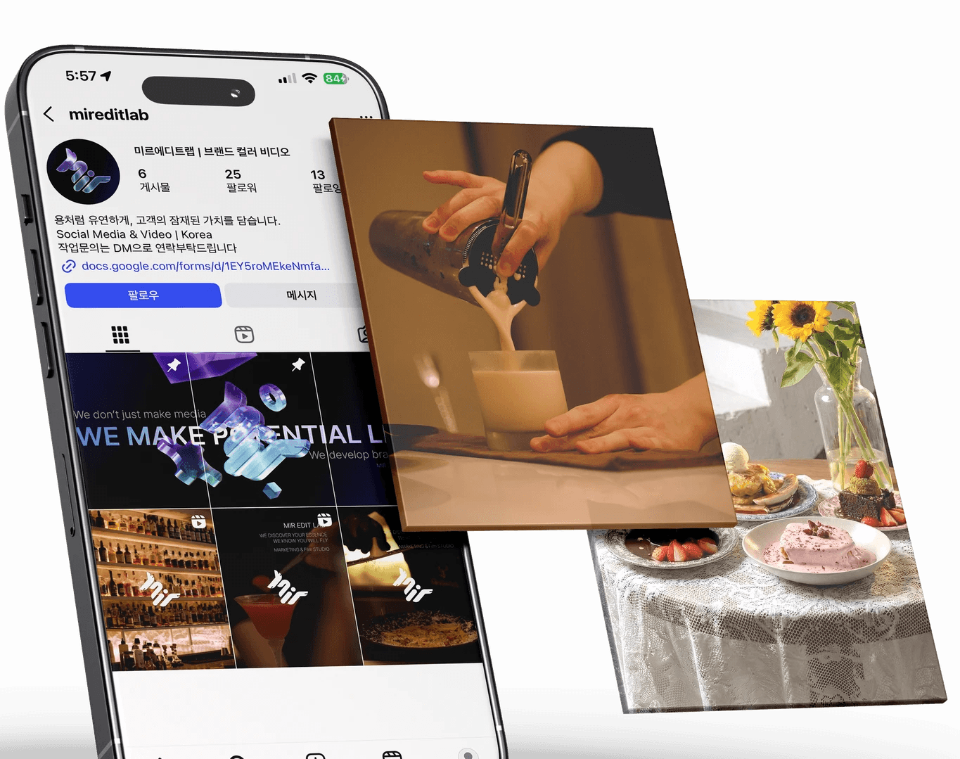 미르에디트랩은 영상 전문 장비를 활용해 촬영을 진행합니다.